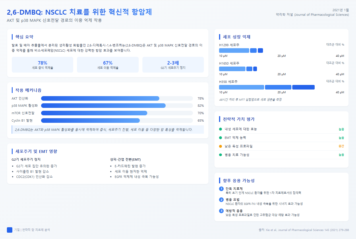 연구진에 따르면, 2,6-DMBQ는 ‘mTOR-AKT’와 ‘p38 MAPK’라는 신호 전달 경로를 억제하여 암세포의 성장과 이동을 막는다고 밝혔다.